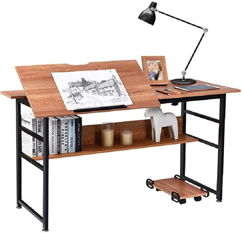 Permukaan meja bisa dimiringkan untuk membaca atau menggambar.